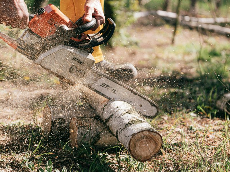 Hubsteiger oder andere technische Hilfsmittel für die Fällung ein.